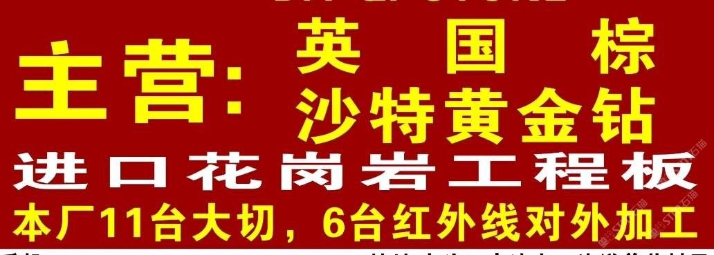 本公司主營(yíng):英國(guó)棕、黃金鉆,藍(lán)眼睛,安格拉黑、黃蝴蝶、淺紫點(diǎn)、進(jìn)口花崗巖等,地址:南安市水頭鎮(zhèn)高速出口洋美茂高鐵橋下!歡迎前來(lái)咨詢