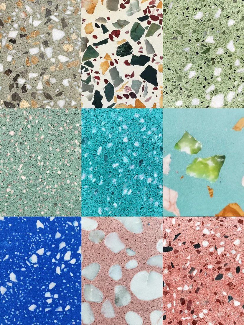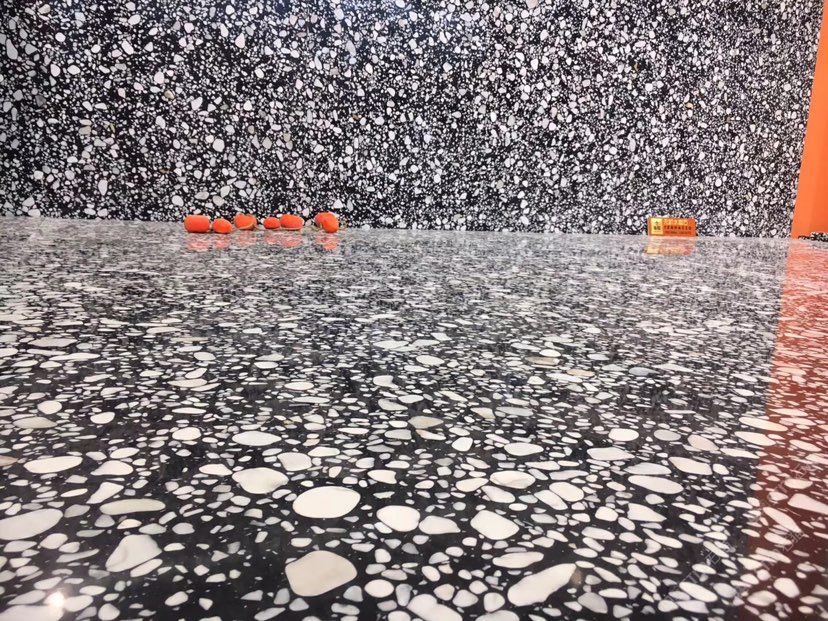 人造無機水磨石,生產(chǎn)主要原材料,天然礦石沙,高標號白水泥和水,經(jīng)過先進制作工藝流程壓制成型荒料,再根據(jù)工程設計厚薄規(guī)格切割成大板。