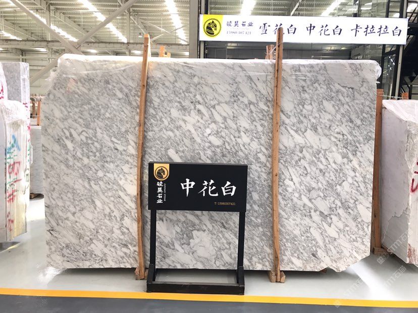 大量精品中花白、卡拉拉白、雪花白大板、荒料