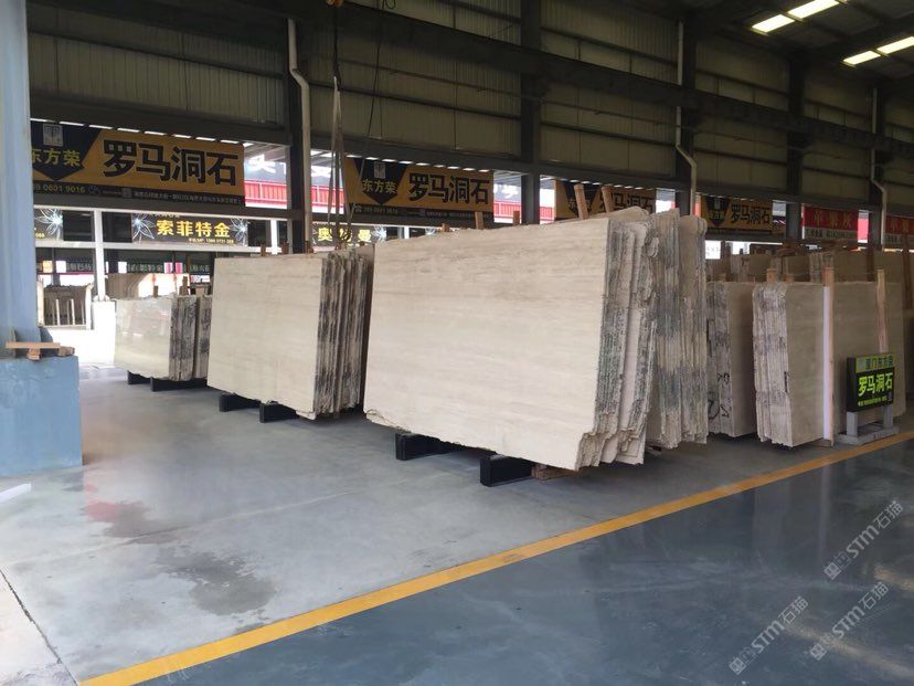 羅馬洞石專場,大量各種規(guī)格的荒料和大板。