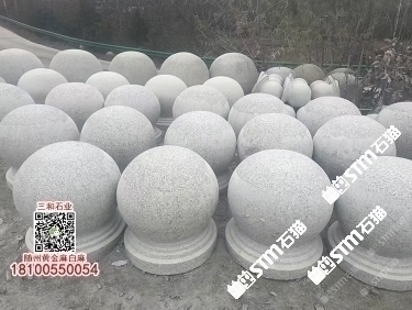 隨州白麻擋車石球路障圓球車止石白色麻石湖北黃金麻