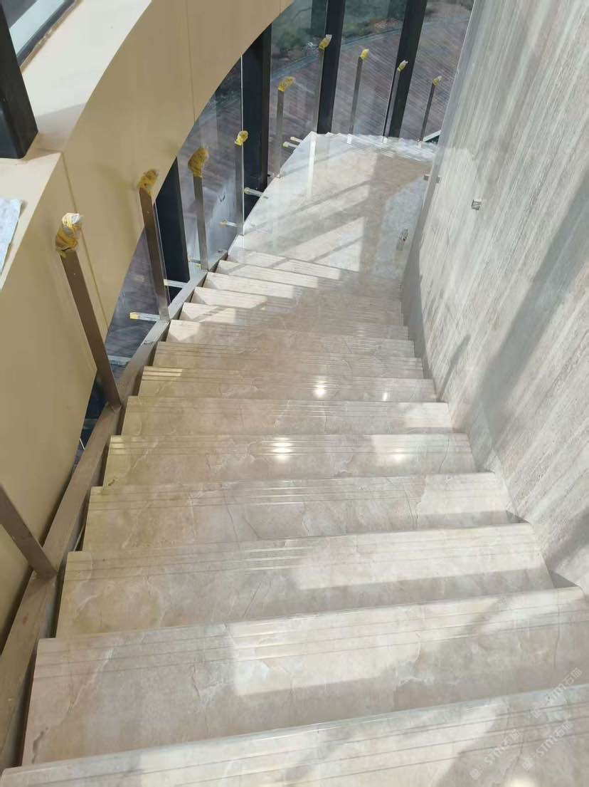 發(fā)布信息: 采用微晶石釉面花紋做樓梯蹋步鋪貼和弧形墻面,效果桿桿的