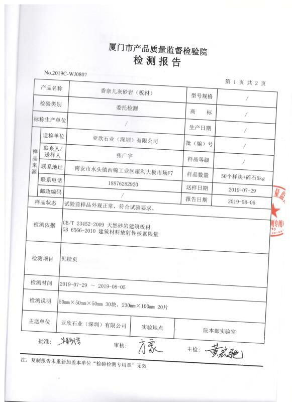 亞欣石材香奈兒灰檢測(cè)報(bào)告