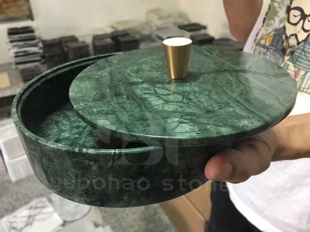 大花綠長(zhǎng)方形收納盒——石材工藝品