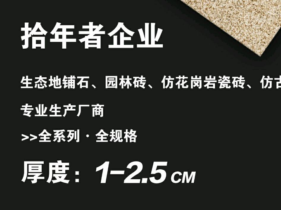 發(fā)布信息: 拾年者生態(tài)地鋪石 厚度:1.0/1.2/1.5/1.8/2.0cm 規(guī)格:30*60/60*60/60*90/60*120 適用:園林地鋪/市政工程/幕墻干掛 花色規(guī)格靈活定制 專線生產 工藝齊全 竭力服務云貴川渝優(yōu)質工程項目 歡迎咨詢:周13902181971,陳13996029567