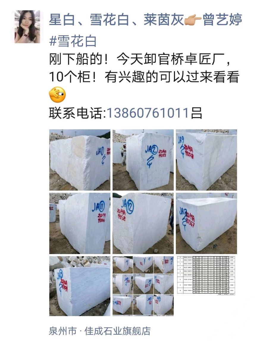 商圈 > 大理石 > 【 雪 花他白 】到柜