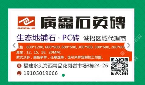 發(fā)布信息: 廣鑫石英磚/PC磚/仿石磚/生態(tài)地鋪石/生態(tài)石 抗壓強(qiáng)度高/抗凍性能好/防滑耐磨 廣鑫石英磚·歡迎鑒賞13400812000