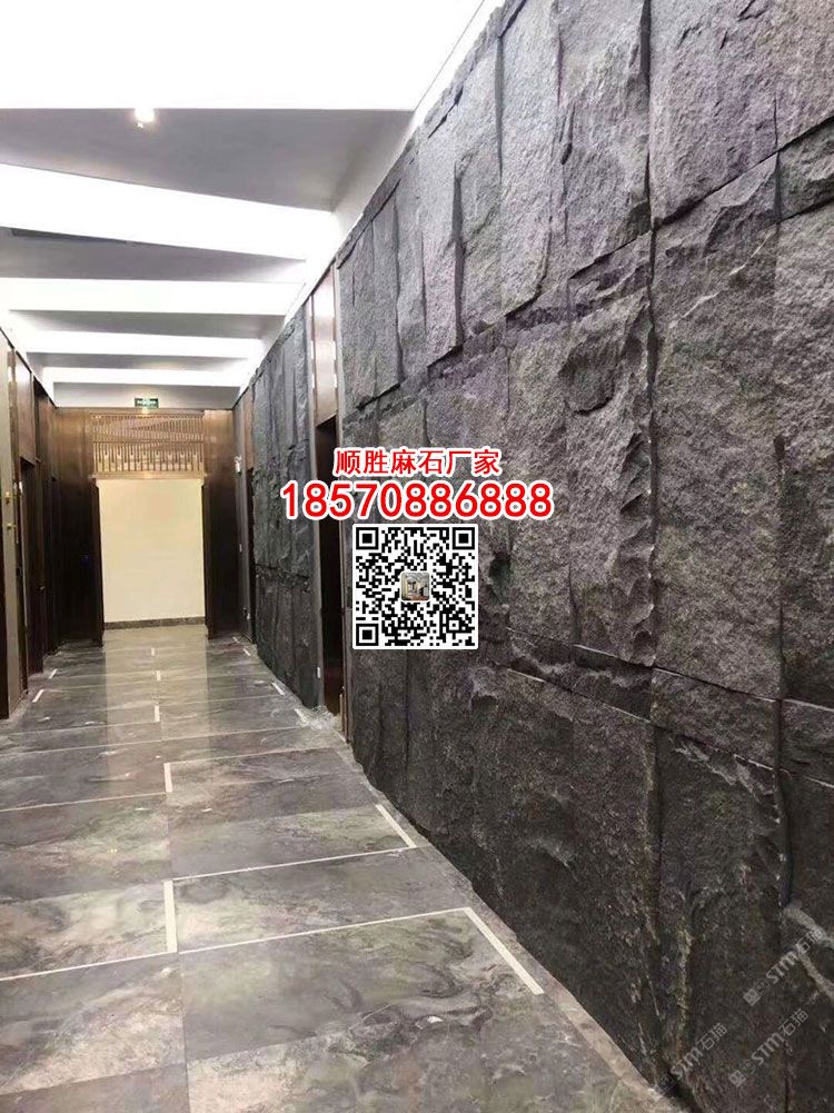 黑麻石材蘑菇水背景墻芝麻黑天然黑色外墻干掛石材加工