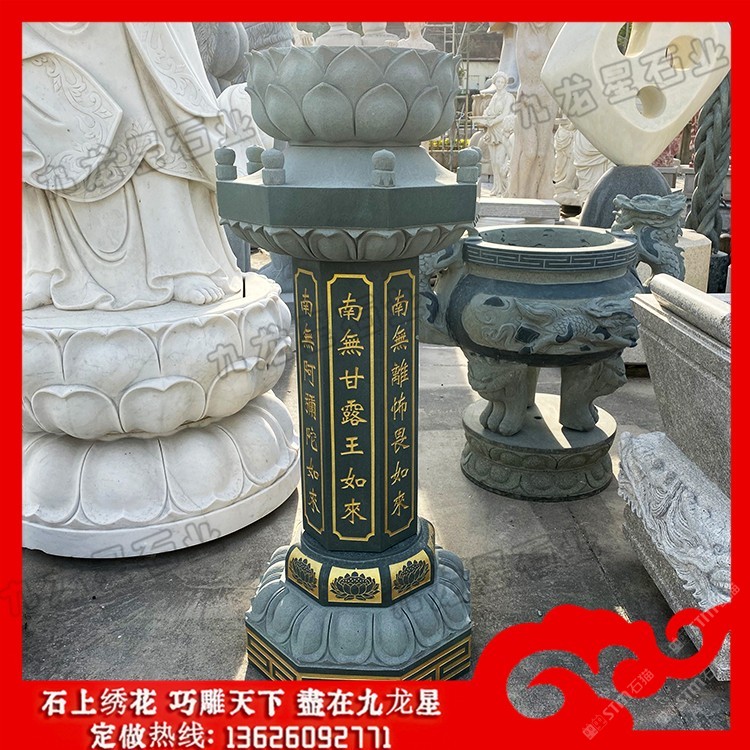 發(fā)布信息: 佛教施食臺價格 石材出食臺圖片樣式——九龍星石業(yè)。 佛教施食臺的構(gòu)造是一種兼具石柱、石塔風格的食臺,一般的石雕出食臺的柱體為多 邊形、上書多尊佛名。常見的有四尊佛名、七尊佛名。分別是:多寶如來,妙色身如 來,廣博身如來,離怖畏如來,甘露王如來,阿彌陀如來。當然也有部分出食臺會雕 刻佛教典故。石雕出食臺除了作為布施之用還能夠裝點庭院,提升庭院的佛法氣息, 弘揚佛法精神。 制作石雕出食臺的材質(zhì)有各類花崗巖、大理石、砂巖等。其中以花崗巖的采用量 ,大理石和砂巖則相對少些。大理石一般表面會帶有很多不規(guī)則的花紋,少數(shù)漢白玉 石除外。砂巖在惠安雕刻早期時間會偶爾采用一些,而后由于粉塵太大,對人的身體 損害較大,因而現(xiàn)在很少會有砂巖雕刻品。所有,若以使用的材質(zhì)種類來區(qū)分出食臺 種類的話有花崗巖施食臺、大理石施食臺、砂巖施食臺等。