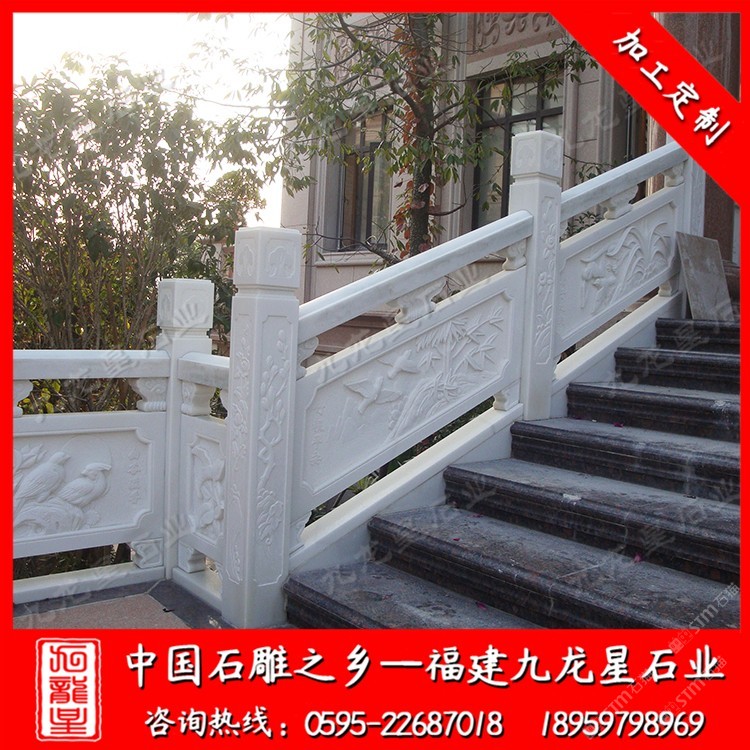 發(fā)布信息: 九龍星石業(yè)常年批發(fā)石材欄桿護(hù)欄,寺廟欄桿、別墅欄桿、景區(qū)石雕護(hù)欄、河道池塘欄桿護(hù)欄、公路石雕護(hù)欄等等。歡迎咨詢我們,我們會(huì)發(fā)您一些適合您的石材欄桿護(hù)欄圖片,并為您做出報(bào)價(jià)(18959798969微信同號(hào))。 石材欄桿護(hù)欄使用天然石材雕刻制作,使用壽命長(zhǎng),可塑性非常強(qiáng),可以制作成方形、圓形、橢圓形等各種樣式,并可在上面雕刻各式圖案。 石材欄桿護(hù)欄起到防護(hù)安全,在建筑物氣勢(shì)方面起著重要的作用。石欄桿應(yīng)用廣泛,適用于道路、橋梁、河道、堤壩,寺廟等。石雕欄桿主要以花崗巖石材和青石石材較常見。