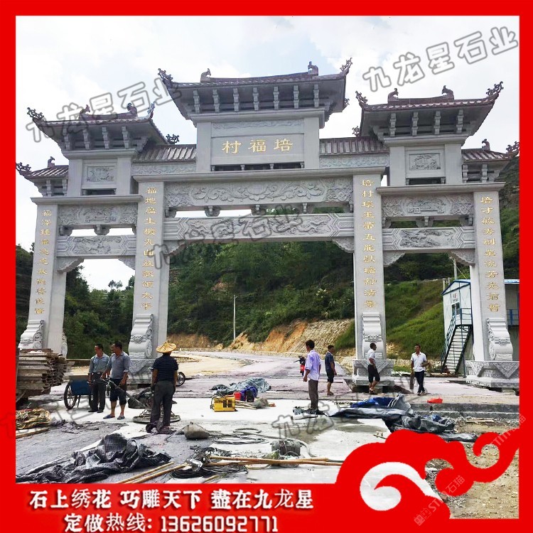 發(fā)布信息: 農(nóng)村村口牌坊 石牌坊生產(chǎn)廠家——九龍星石業(yè)。 農(nóng)村村口牌坊制作內(nèi)容豐富,雕刻精美,每一座石牌坊都瑰麗華美,都是經(jīng)過石牌坊雕刻廠家精雕細(xì)刻加工而成的。 從農(nóng)村村口牌坊設(shè)計來看,規(guī)格主要可以分為單門牌坊、三門牌坊、五門牌坊等,在樣式上可以考慮沖天式牌坊或者不出頭式牌坊。此外石牌坊本身的雕刻圖案選擇也非常多,根據(jù)當(dāng)?shù)氐娘L(fēng)土人情以及文化特色等,在牌坊的設(shè)計上都會有很大的不同,考慮村莊石牌坊多少錢,也會考慮到牌坊本身的工藝設(shè)計以及雕刻的精細(xì)度情況,做工越是精致牌坊的價格越高,做工要是普通的話相對來說也就不需要那么多錢。