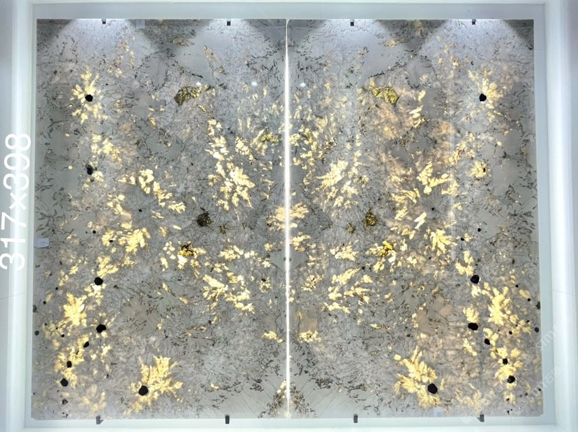 孔雀開(kāi)屏對(duì)拼奢石背景上新