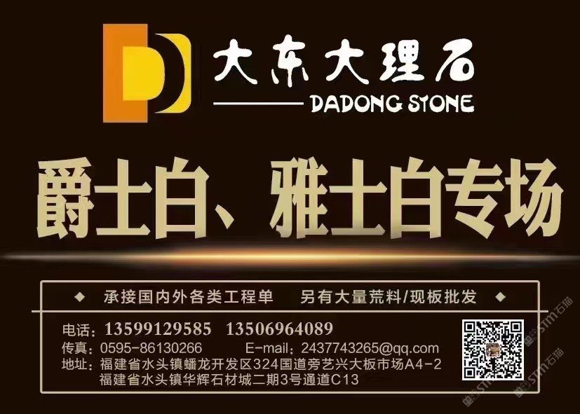 發(fā)布信息: 大東????希臘白石專場 新礦雅士白/老礦爵士白 現(xiàn)貨1.8/2.0/2.3/3.0/5.0厚度 有單不要錯過,總有一款適合您 ??15880968553蔡