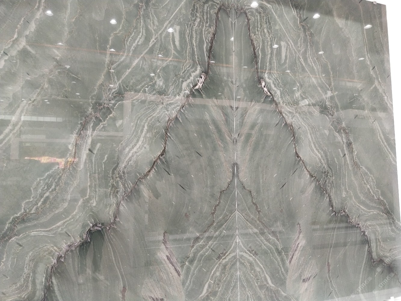 商圈 > 大理石 > 新正大奢石館[奢石品牌]龍紋綠背景墻山水畫。