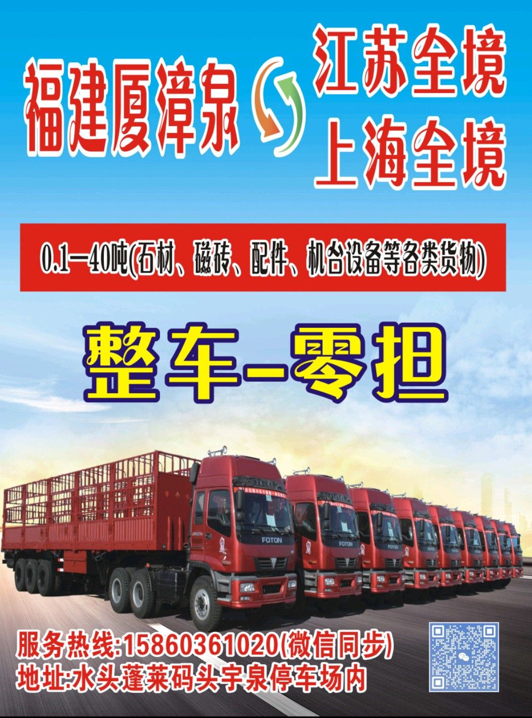 福建泉州水頭—江蘇,上海全境,往返專線。