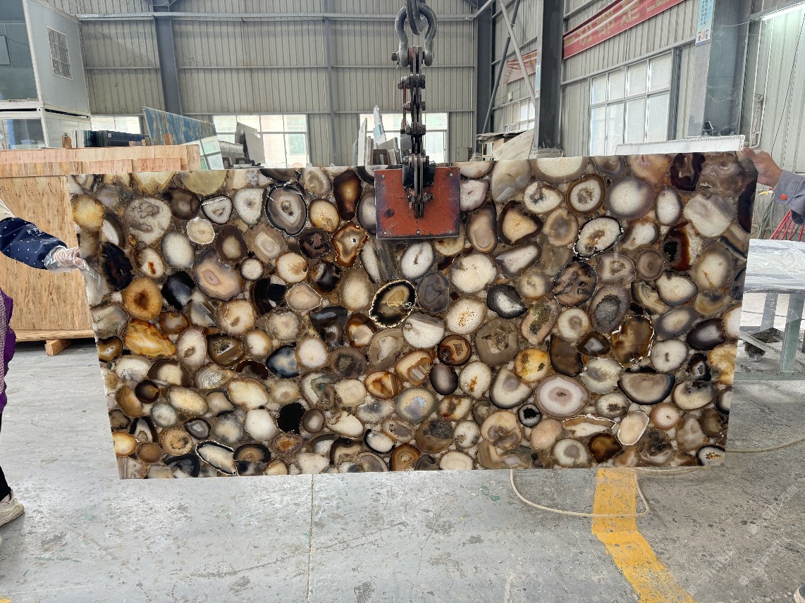 批發(fā)透光灰瑪瑙大板,透光半寶石板材,棕色奢石