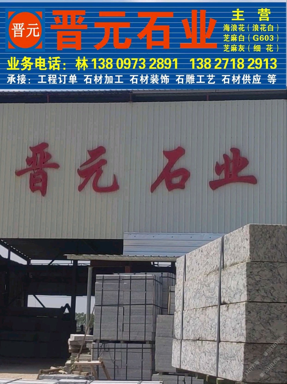 發(fā)布信息: 晉元石業(yè)板材廠產(chǎn)品包括各類石材板材、石材雕塑、石材工藝品等,廣泛應(yīng)用于建筑裝飾、園林景觀、室內(nèi)裝修等領(lǐng)域。13809732891林(微信同號(hào))/13725220562榮