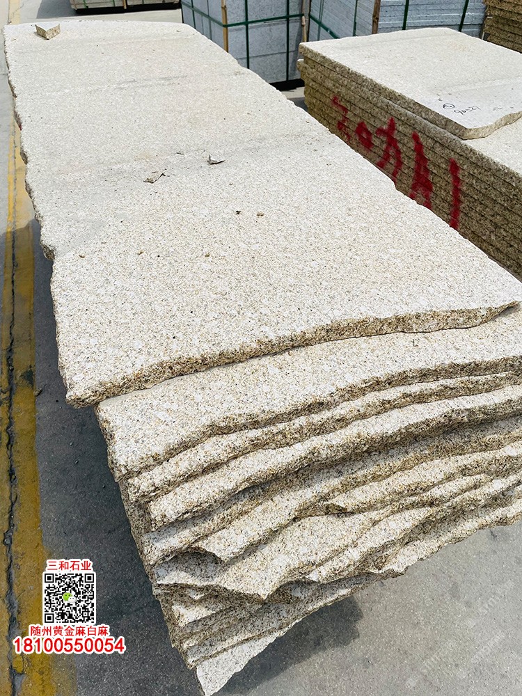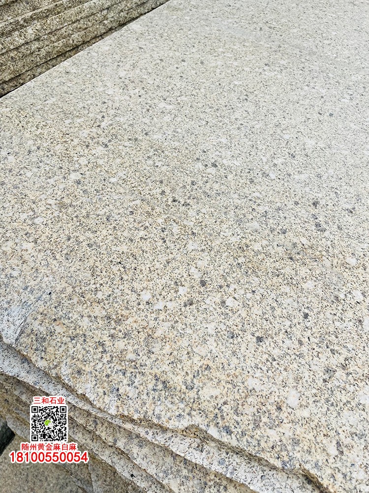 隨州黃金麻石材-隨州白麻花崗巖-光面黃金麻-燒面黃金麻-荔枝面黃金麻-光面白麻-燒面白麻-荔枝面白麻 隨縣三和石業(yè) 劉經(jīng)理 18100550054(微信同號(hào))專業(yè)隨州黃金麻/白麻供應(yīng)商廠家,工廠位于隨州石材工業(yè)園;專注于別墅幕墻干掛工程及園林地鋪石材加工,實(shí)力工廠,廠礦一體;主營(yíng):隨州黃金麻、隨州白麻、湖北黃金麻、湖北白麻、黃銹石、白銹石、黃色麻石、白色麻石、光面黃金麻、燒面黃金麻、荔枝面黃金麻等花崗巖;同等品質(zhì)基地批發(fā)價(jià)格更低,隨縣三和石業(yè)有限公司歡迎你來電溝通洽談業(yè)務(wù)!