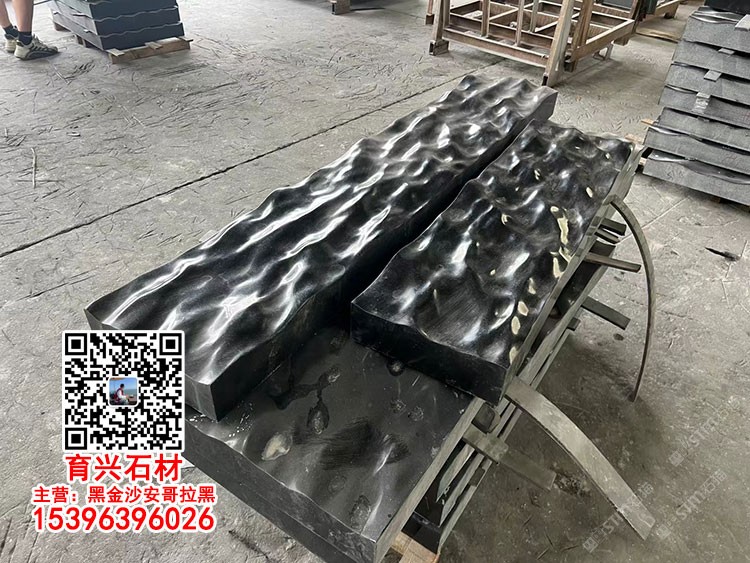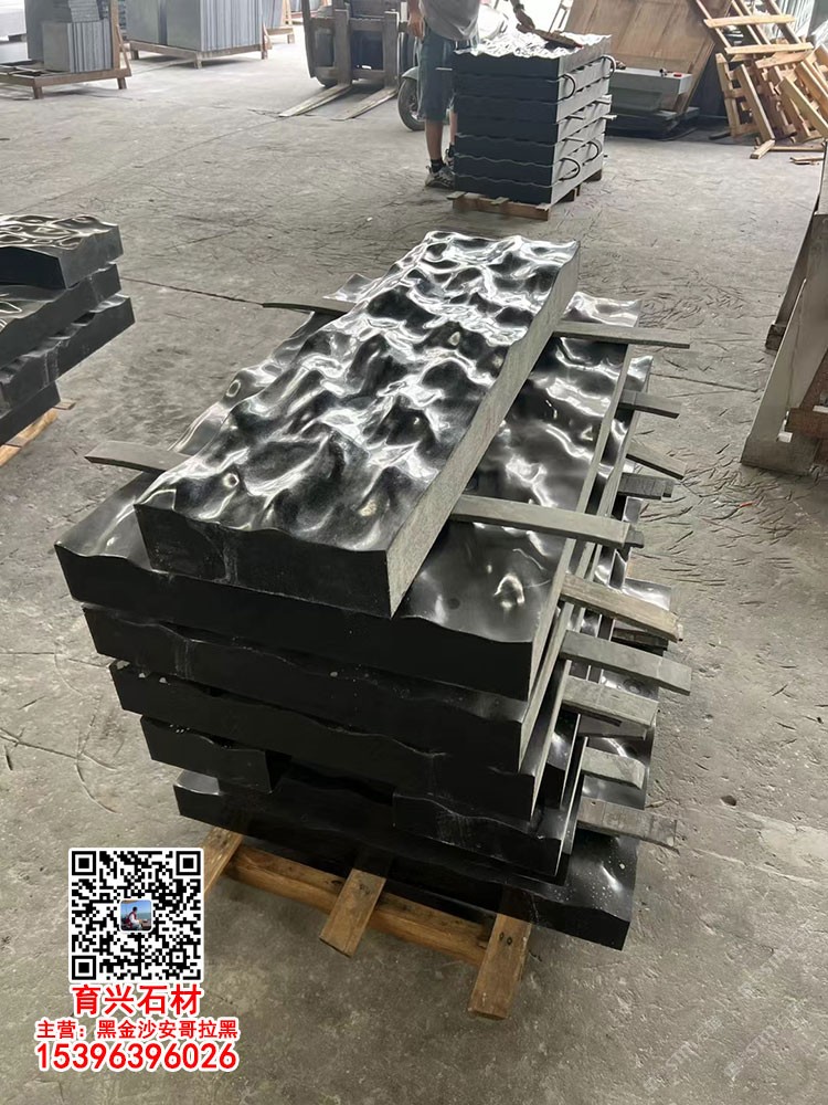 印度黑金沙花崗巖水波紋水池水景石材黑金砂安哥拉黑