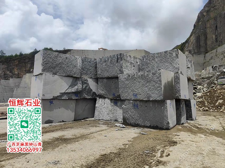 廣西鐘山青石材荒料廣西芝麻黑G654石材方料金點綠