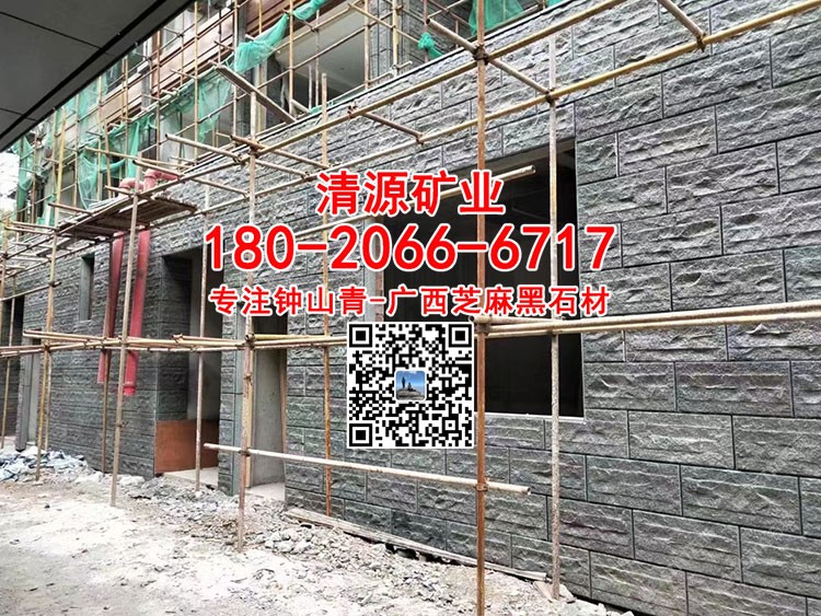 廣西鐘山青石材自然面背景墻金點綠劈裂石廣西芝麻黑石