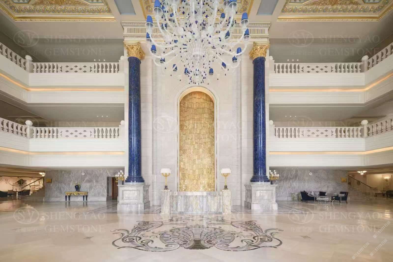 定制大尺寸青金石羅馬柱,半寶石羅馬柱