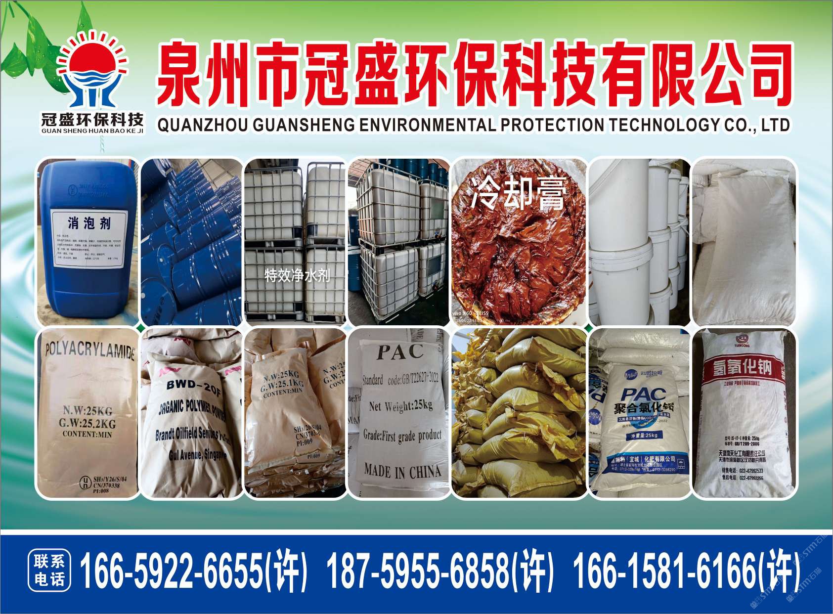 發(fā)布信息: 冠盛環(huán)??萍?6615816166 主營(yíng)產(chǎn)品:凈水劑,冷卻劑,冷卻粉,大理石人造石專用凈水劑,沉淀粉,消泡劑,消毒凈水劑,防銹凈水劑,除銹劑,除臭劑,聚丙烯酰胺,聚合氯化鋁,鹵精,洗沙專用凈水劑,壓濾機(jī)專用凈水劑,陶瓷廠專用凈水劑(黃藥 白藥)等所有水處理環(huán)保材料……