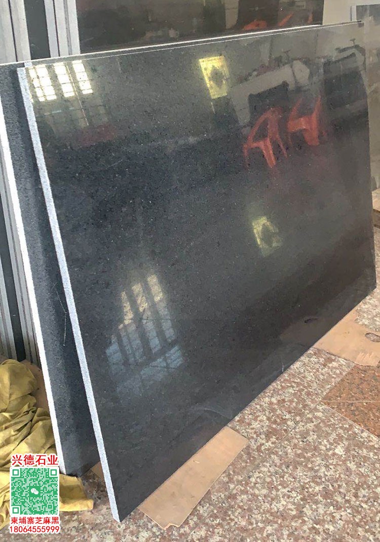 柬埔寨細(xì)花大板面金礦654芝麻黑光面臺(tái)面板柬埔寨黑