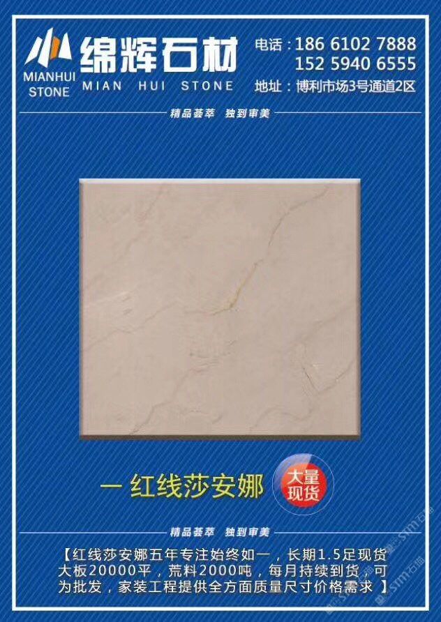 綿輝石材 聯(lián)系人:謝    186****7888 查看 手機號碼:無 主營范圍: 大板批發(fā)、 企業(yè)地址:福建泉州南安市水頭鎮(zhèn)澳盛大板市場7B棟6區(qū)