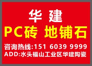 華建PC磚地鋪石主營產(chǎn)品:福鼎黑(PC磚),黃金麻(PC磚),貴妃紅(PC磚),芝麻白(PC磚),中國黑(PC磚),芝麻灰(PC磚),章丘黑(PC磚),珍珠白(pc磚),G623(PC磚),G633(PC磚),G654(PC磚),烏克蘭鉆(PC磚),長泰芝麻黑(pc磚),麻城芝麻白(pc磚),隨州黃金麻(pc磚),蝦紅荔枝面(PC磚),芝麻灰荔枝面(PC磚),G654荔枝面(PC磚),芝麻白(石英磚/PC磚),喬治亞灰荔枝面(PC磚),銹石荔枝面(PC磚),黃金麻荔枝面(PC磚),霞紅荔枝面(PC磚),地鋪石(pc磚)企業(yè)地址:福建泉州水頭福山工業(yè)區(qū)華建陶瓷