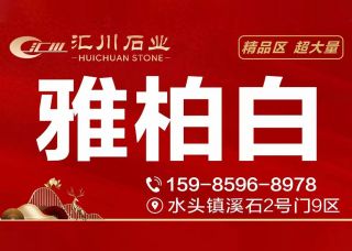 匯川石業(yè)主營(yíng)產(chǎn)品:雅柏白,雅柏白2,雅柏白(雅柏灰),雅柏白(灰),雅柏白(宏大礦),鵝毛白,雅柏白(雅高礦)企業(yè)地址:福建泉州南安水頭鎮(zhèn)溪石2號(hào)門9區(qū)